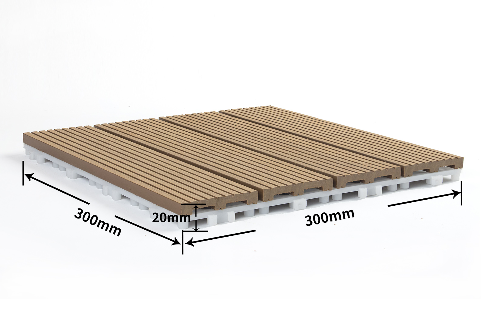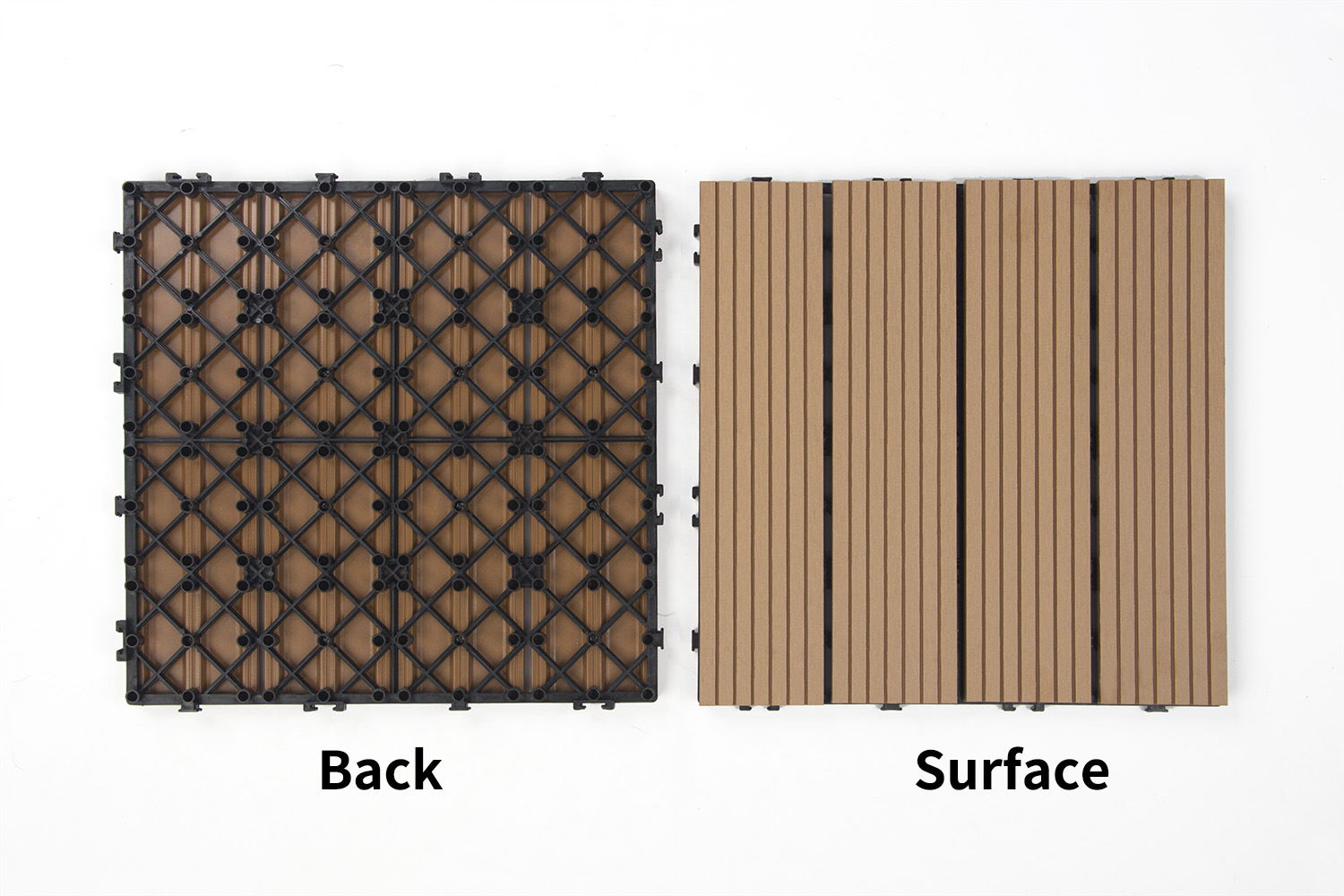 AIWU Wpc Decking Tiles is a 100% eco-friendly capped composite deck tile comprised of natural wood grains and interlocking base for quick and easy installation. Also, the decking tiles will not bend, warp, split, or crack so not only is it easy to install;